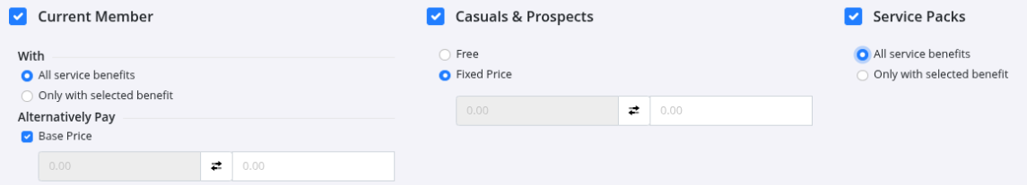 Decide who can book and attend this service and how it’s paid for. All membership types can be included.