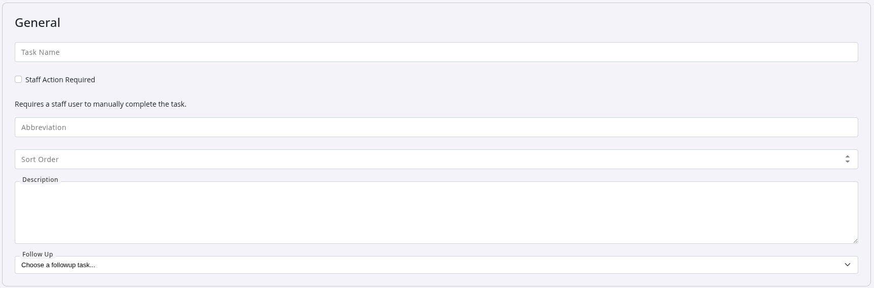 For staff tasks, the description becomes the instructions staff see when the task lands on their to-do list. Make it clear and contextual.